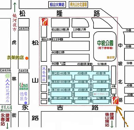 我個人很愛逛地圖上用藍色框起來的小巷子